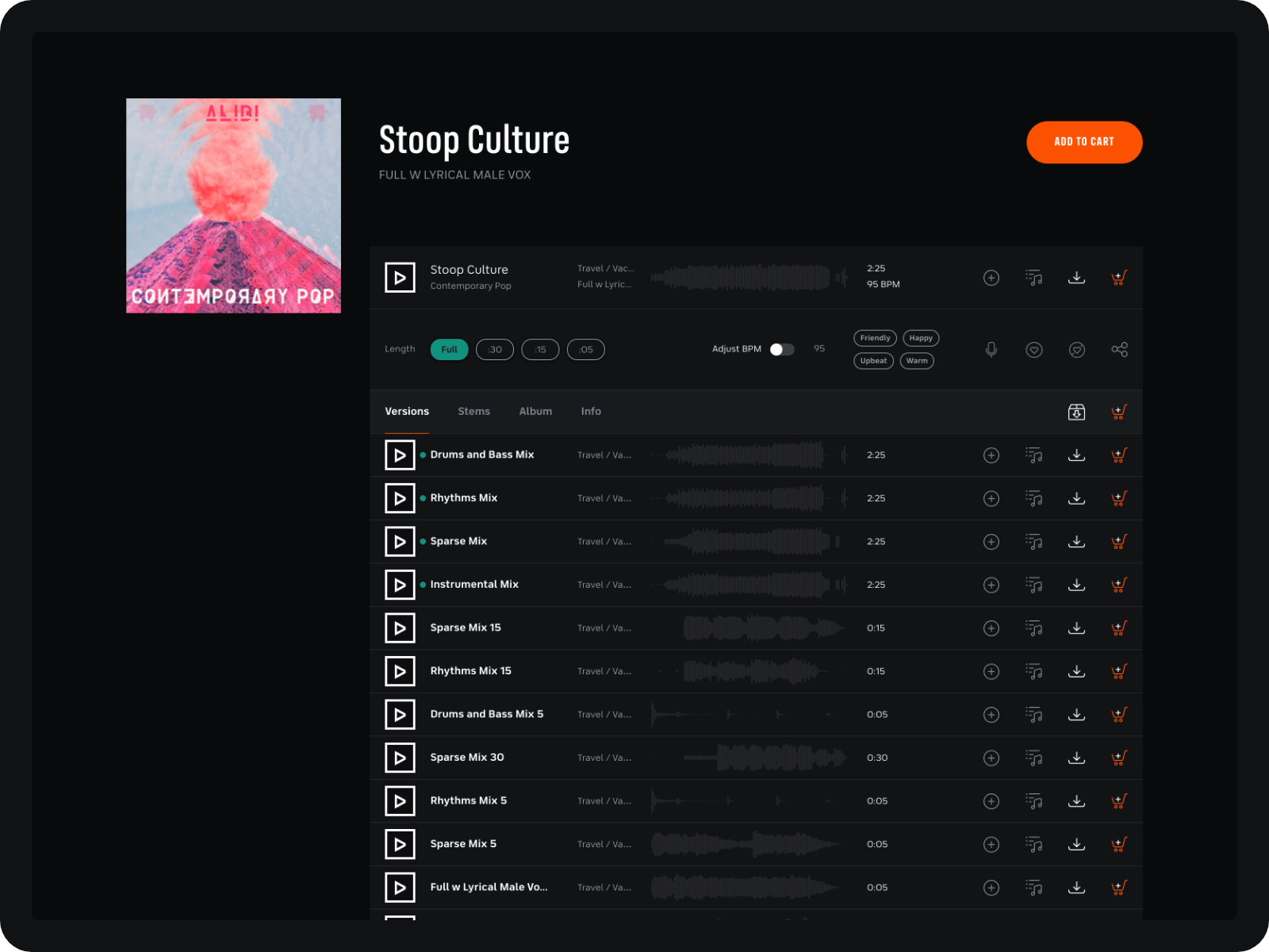 Editors need flexibility to keep content fresh. That’s why our catalogs include a variety of alternate mixes, stems and cutdown versions to give you options.