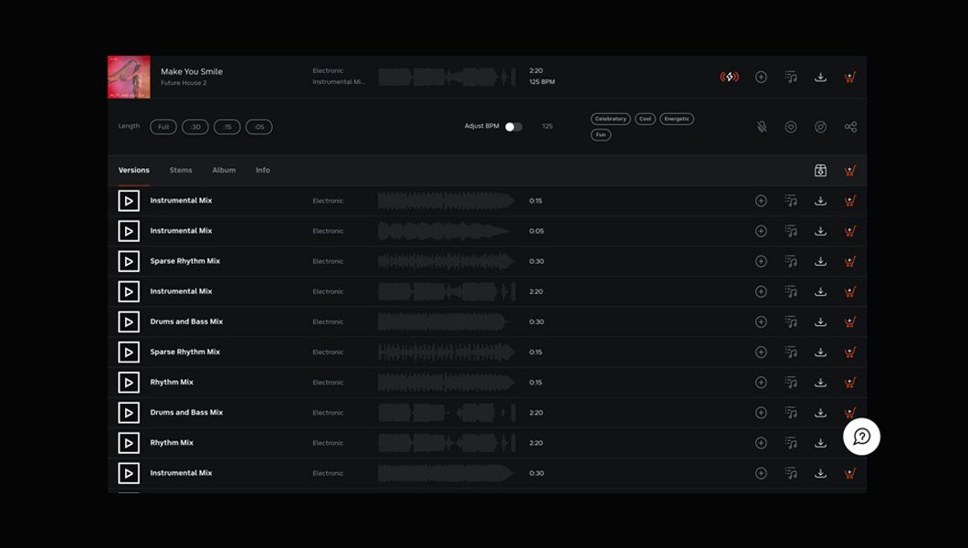 As the mantra of ‘Always Be Listening’ took hold, we developed more specialized structures for our tracks, formatted and designed with editors in mind, and optimized for easy cut points and plenty of builds. Over time, we came to amass an extensive offering of alt mixes and stems simply by answering our customers’ calls for versatility and customization.